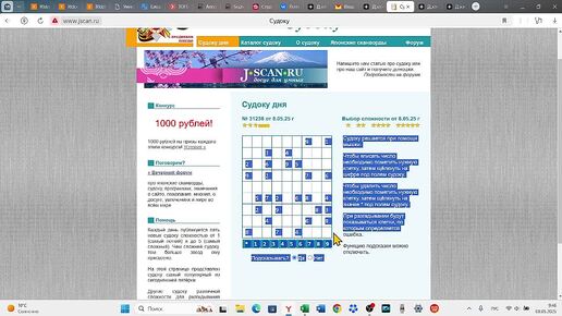 Судоку дня (3*) от 08.05.2025 из сайта jscan.ru