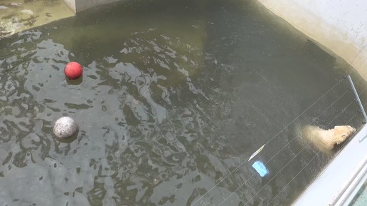 Белка и Стрелка из бассейна теперь выходят на песчаный пляж. 08.05.2025