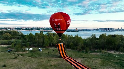 "Дух захватывает": огромную Георгиевскую ленту подняли на воздушном шаре в России