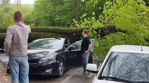 Дерево упало на авто с людьми после сильного ветра, никто не пострадал, Ставрополь