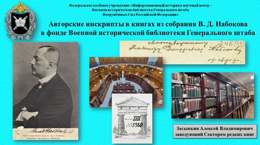 Авторские инскрипты в книгах из собрания В. Д. Набокова в фонде Военной исторической библиотеки Генерального штаба