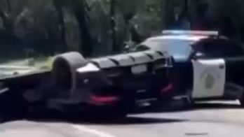 В Калифорнии водитель дорогущего спорткара Lamborghini Huracan STO не справился с управлением, перевернулся и заблокировал дорогу.