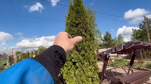 Стрижка туй и снижение кроны туе СМАРАГД. Из большой "морковки" маленькую