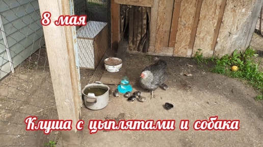 Клуша с цыплятами и собака...
