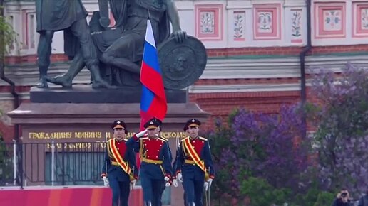 🇷🇺 Почётный караул традиционно внёс на Красную площадь флаг России и Знамя Победы