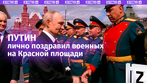 Путин лично поприветствовал и поздравил с Днем Победы военных на Красной площади