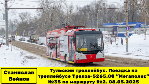 Тульский троллейбус. Поездка на троллейбусе Тролза-5265.00 "Мегаполис" №35 по маршруту №2. 08.05.2025