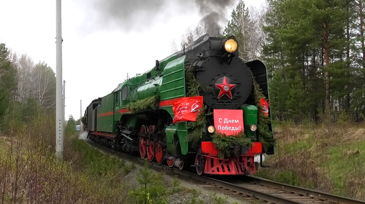 "С днем Великой Победы!" Паровозы П36-0096 и ЛВ-0355 с поездом Победы