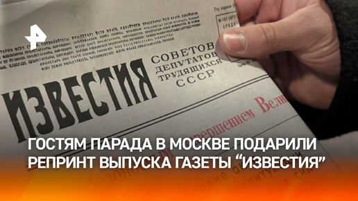 Гостям парада Победы в Москве подарили копию исторического номера "Известий"