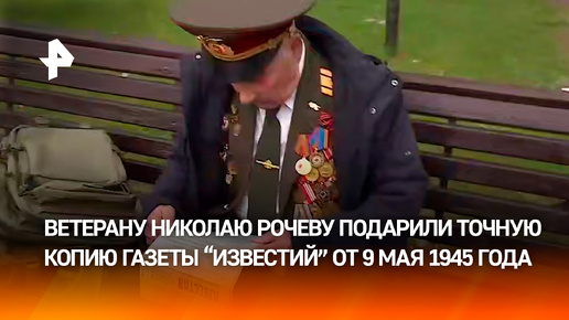 "Известия" вручили 97-летнему ветерану Великой Отечественной войны Николаю Рочеву репринт выпуска газеты от 9 мая 1945 года