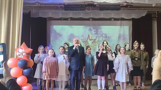Каролина поёт песню "День Победы" вместе с ветераном войны и ансамблем. 9 Мая 2025 г.