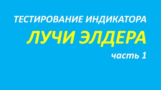 Индикатор Лучи Элдера (ELR) тестирование часть 1.1