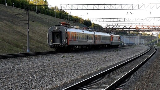 Электровоз ЭП1-280 с вагонами-лабораториями.