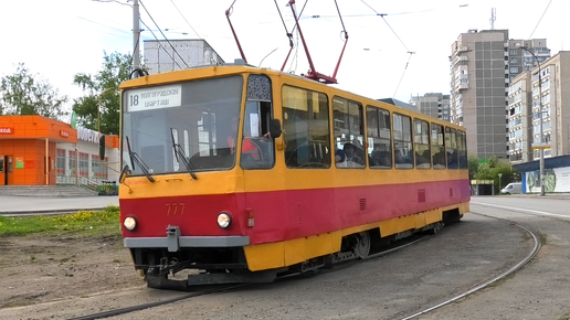 Трамвай Екатеринбурга Tatra T6В5SU СМЕ борт. №777 маршрут 18 следует по улице Викулова