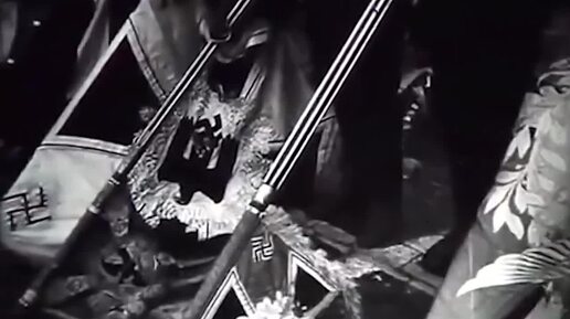 Брошенные фашисткие знамёна к ногам русских победителей.
