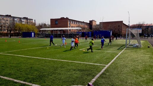 Тренировка юных футболистов перед соревнованиями