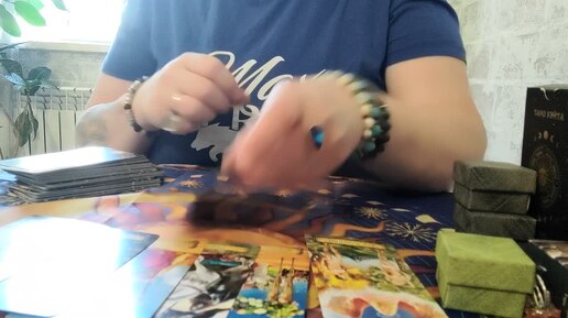 Говорит и показывает таро.