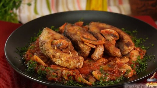 Золотистая корочка, томатная страсть и грибной аромат. Карп с томатно-грибным соусом