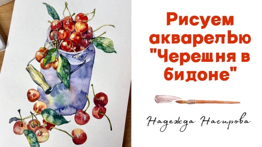 Мастер-класс рисую акварелью «черешню в бидоне»