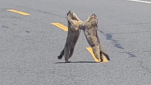 Вот это умора! Сурки устроили кулачный бой прямо в центре трассы на северо-западе Китая