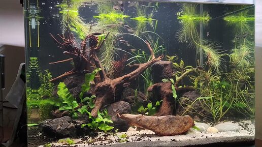 Чёрный-пречерный аквариум. Полный обзор аквариума на 70литров после запуска.