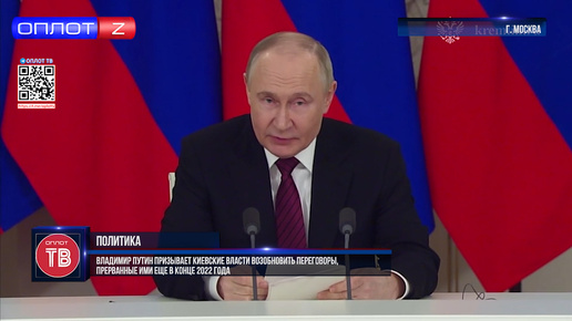 Владимир Путин призывает киевские власти возобновить переговоры, прерванные ими же еще в конце 2022 года