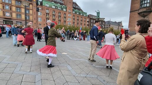 Танец под "Смуглянку" на центральной площади Копенгагена 9 мая 2025 года.
