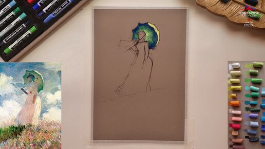 Повторяем картину Клода Моне «Дама с зонтиком» сухой пастелью KOH-I-NOOR