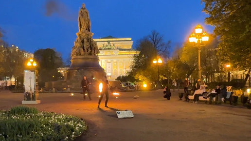Огненное файер-шоу в Екатерининском сквере в Санкт-Петербурге 08.05.2025