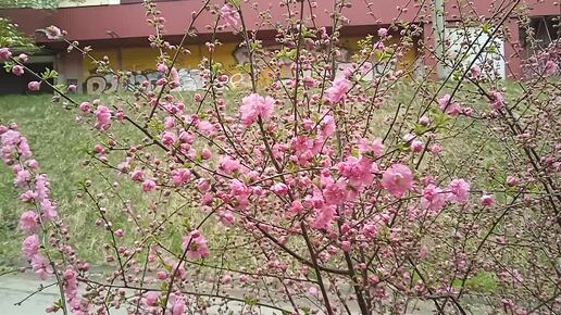 Сакура во дворе посреди обычных советских пятиэтажек в Иркутске.