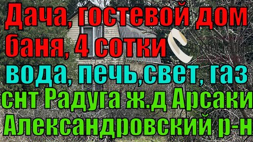 Продаётся бревенчатая дача с баней и гостевым домом на участке 6 соток в снт Радуга, ж/д Арсаки.