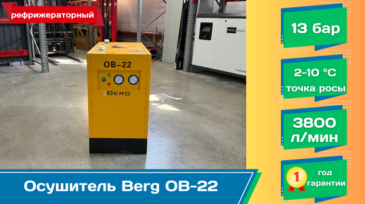 Осушитель рефрижераторный Berg ОВ-22: 3800 л/мин, 13 бар, точка росы от +2 до +10°C. Краткий обзор от ООО "РД-Тех".