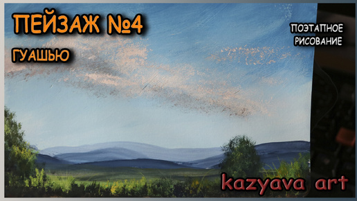 Как нарисовать ПЕЙЗАЖ №4 детской гуашью от HIMI. Рисую небо, горы, поле, лес.