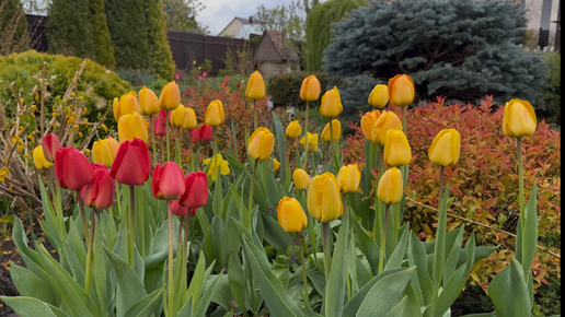 Большая прогулка по саду. Цветут тюльпаны, нарциссы. Продолжаю трудиться.