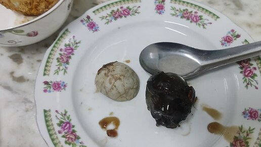 Ферментированное черное внутри яйцо🥚 - странный запах...