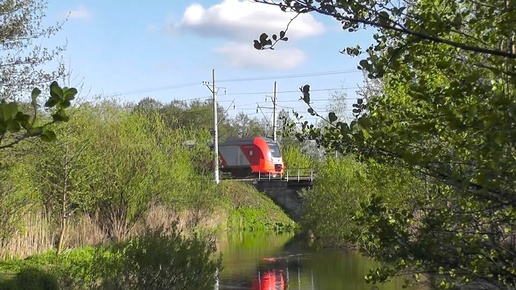 "Ласточка" проезжает по мосту через реку Чëрная.