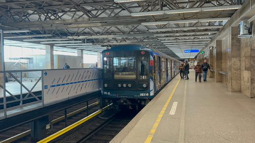 Метропоезд "Номерной" (81-540/541.9) №241 в окрасе «100 лет ФК Зенит» на ст.м.Купчино, май 2025 года