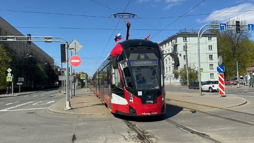 "Приветливый!" Трамвай "Невский" (71-932) №7770 на Новочеркасском пр., май 2025 года