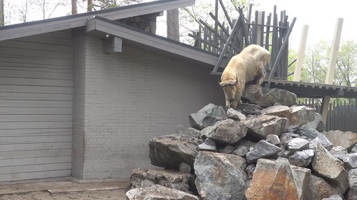 Золотистый такин спускается по камням. 08.05.2025
