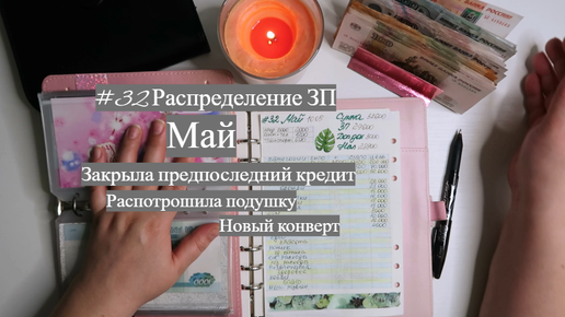 #32 Распределение ЗП Май. Закрыла очередной кредит. Распотрошила подушку. Новый конверт.