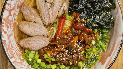 Рамен 🍜 на бульоне из утки с карамелизированной в соусе унаги утиной грудкой🌶🌶🌶