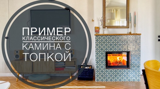 Пример классического камина с топкой. Плитка вместо мрамора и полка из дуба