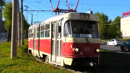 Трамвай Екатеринбурга Tatra T3SU СМЕ борт. №207/208 маршрут 8 следует по проспекту Космонавтов