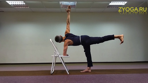 Полумесяц и Скрученный вариант на стуле Айенгара / Half Moon and Revolved Version with Iyengar Chair