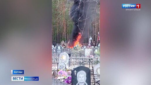 Пожар на Котласском кладбище повредил могилу участника специальной военной операции
