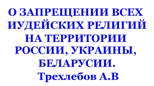 О ЗАПРЕЩЕНИИ ВСЕХ ИУДЕЙСКИХ РЕЛИГИЙ НА ТЕРРИТОРИИ РОССИИ, УКРАИНЫ, БЕЛАРУСИИ. Трехлебов А.В #трехлебов #украина #беларусь