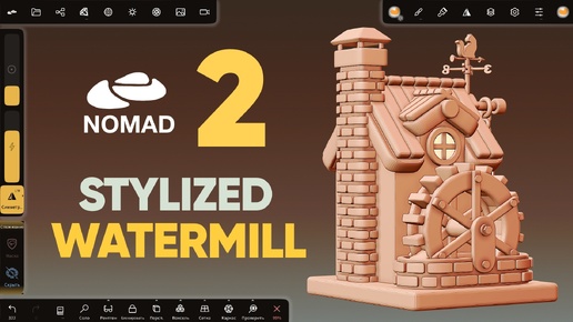 Nomad Sculpt 2.2 | 3д стилизованный домик с водяной мельницей | Часть 2