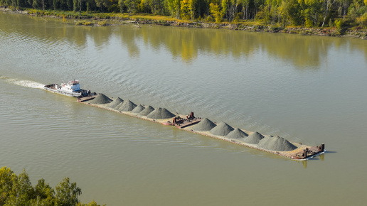 Речной толкач РТ-452 с Камня-на-Оби в Барнаул с щебнем.