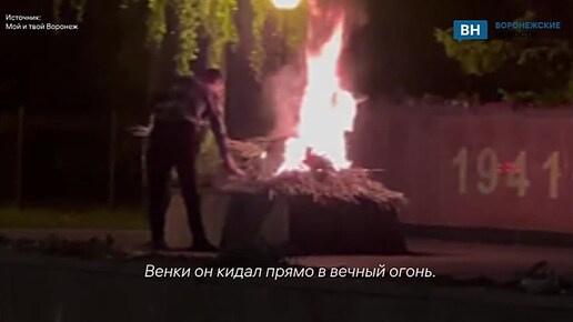 Странное поведение мужчины сняли на видео на памятнике Славы в Воронеже он жег цветы
