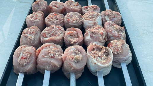 Шашлык-ролл на углях🔥#шашлык